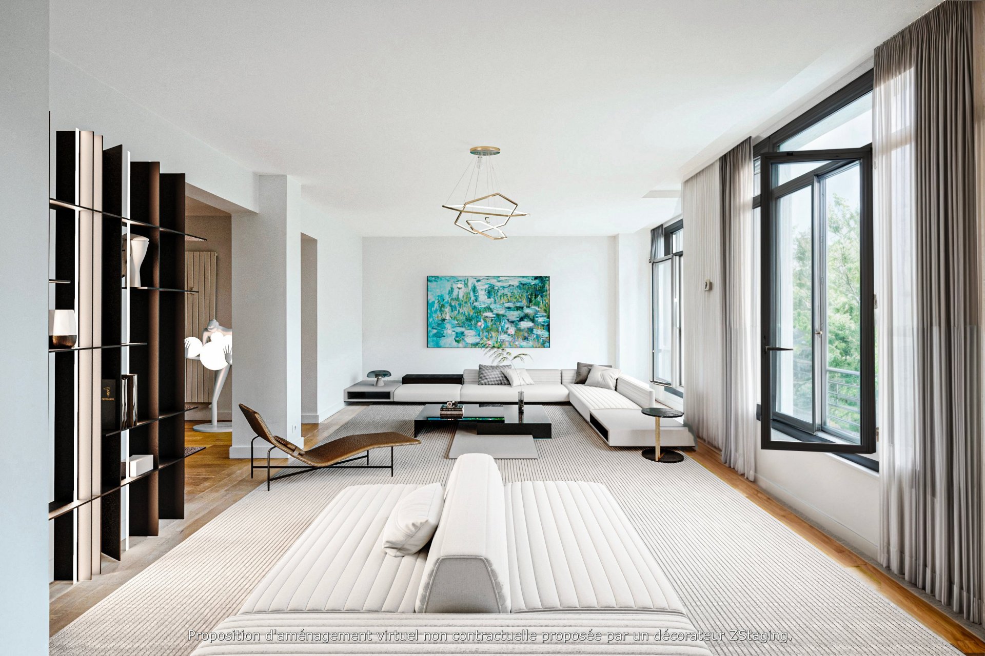 Neuilly Chauveau, dans un très bel immeuble sécurisé en pierre de taille, l'appartement situé au 2ème étage avec ascenseur, traversant et ensoleillé, est doté d'une superficie de 166 m² loi Carrez.